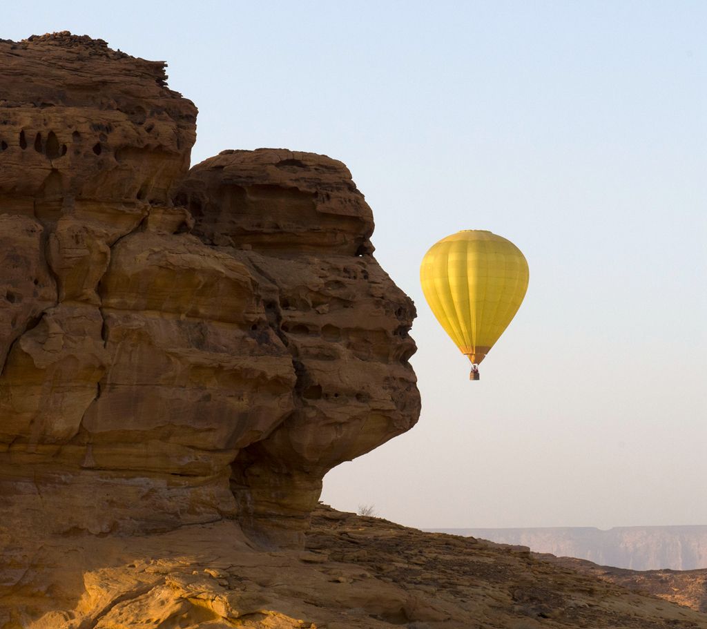 沙特阿拉伯西北部城市埃尔奥拉,拥有丰富的自然、人文遗产,地质结构多样,无论是错综复杂的岩层,还是连绵起伏的沙丘,抑或被柑橘林覆盖的山谷,到处都上演着精美的岩石艺术。其中,大象岩是埃尔奥拉极具代表性的岩石艺术奇观之一,足有三层楼之高的巨型岩石矗立在沙漠中,十分壮观。泛着红光的大象岩,是经历数百万年的风雨洗礼后自然形成的,在阳光下充满华丽感。大象岩附近的广阔沙漠是深受欢迎的露营场地,尤其是在节日期间,当地居民还有游客都喜欢在温暖的阳光下漫步,或者骑着骆驼在沙漠里留下脚印。