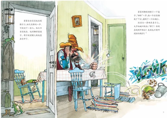一个关键动作之后,图中的各种人、事、物会随之发生了变化。风暴过后,海边的一切发生什么变化?吃饭之后,餐桌上的食物发生了什么变化,以及哪盘菜原样未动?一夜过后,哪些消失了,哪些现出了原形?每个页面都有一个特定主题和很多妙趣横生。
