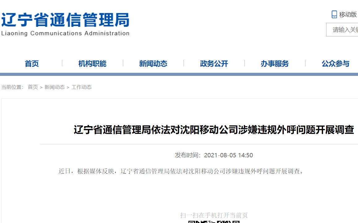 辽宁省通信管理局介入调查“沈阳移动违规外呼”问题