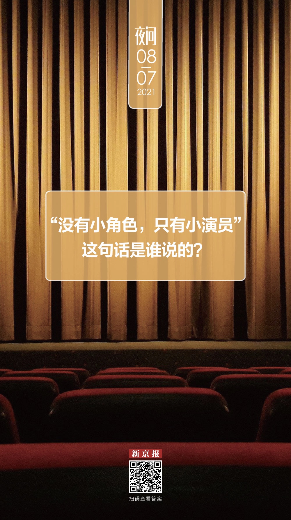 “没有小角色,只有小演员”这句话源自他的著作《演员的自我修养》,原文是:还会有人对我说:“那么演员之间的嫉妒倾轧、勾心斗角、渴望角色、争抢功劳、争抢主角该怎么处理呢?”我回答:“那些背后善搞小动作的演员和嫉妒心极强的演员一定要毫不留情地让他们离开,对角色挑三拣四的演员也一样。要让那些对自己角色的分量不满的演员记住,没有小角色,只有小演员。”