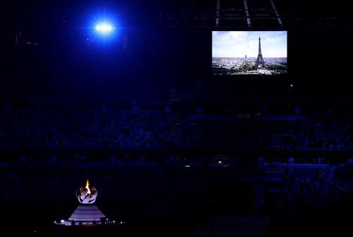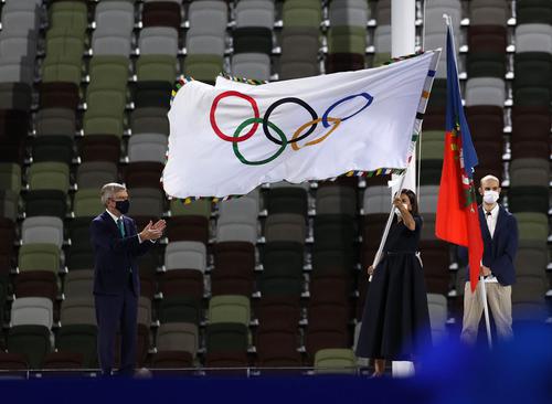 巴黎市长从国际奥委会主席巴赫手中接过会旗,东京时间结束,夏季奥运会正式进入巴黎时间。