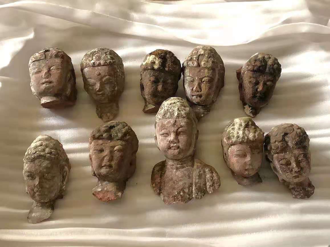 庞坡洞被盗的十颗佛头。受访者供图