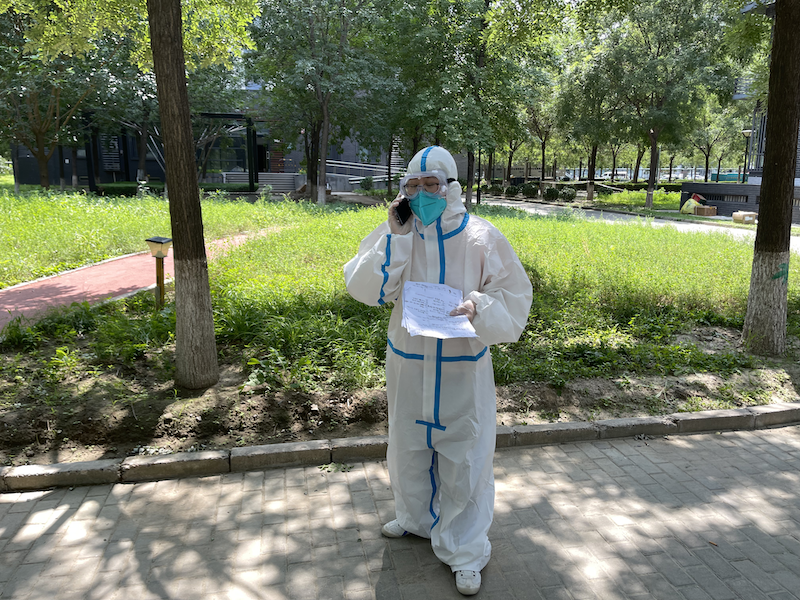 崔宁是望京国风社区的一名工作人员。8月10日,国风上观小区集中进行第三次核酸检测,崔宁和社区同事一起组织好居民分批次前往小区内设置的临时检测点。