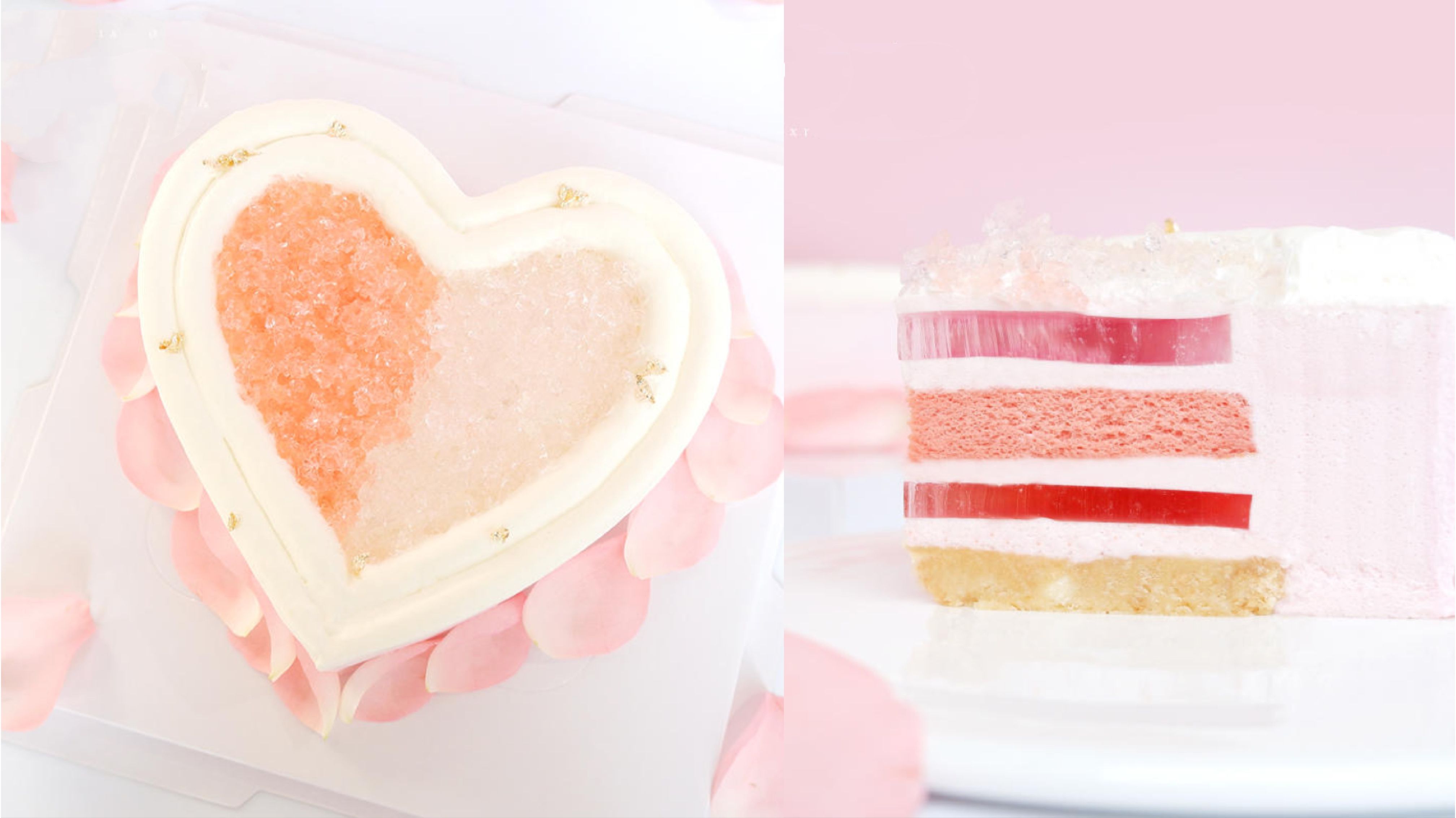 红白配色的爱心拼图,让派悦坊的七夕蛋糕一下“出圈”。这样的蛋糕根本不需要表白的台词,一切都已经不言而喻:红白相间,我中有你,有你出现,爱才完整。这样高颜值的蛋糕,口味是以魔力为底、青柠为芯,柑橘做填充,酸甜的轻盈感搭配可乐跳跳糖和君度橙味酒冻。酸甜、微醺,是爱情的味道,是心跳的节奏。