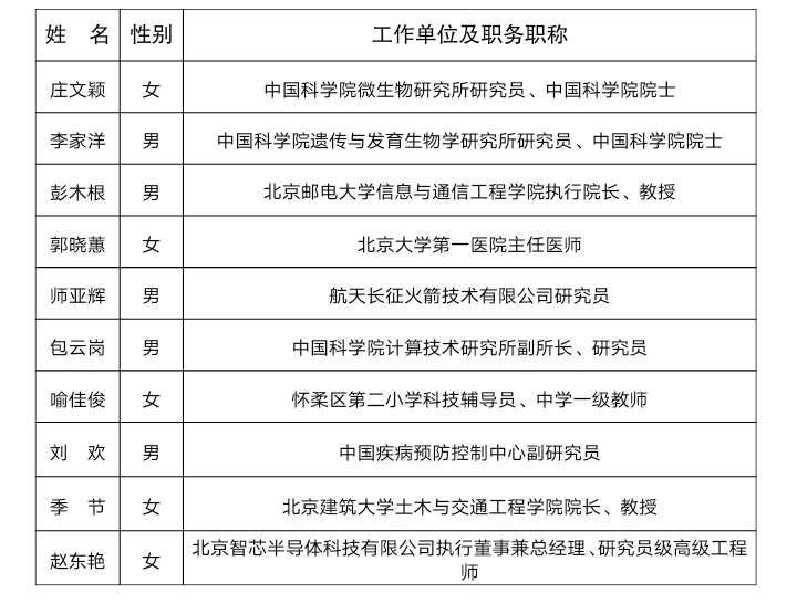 2021年北京“最美科技工作者”名单: