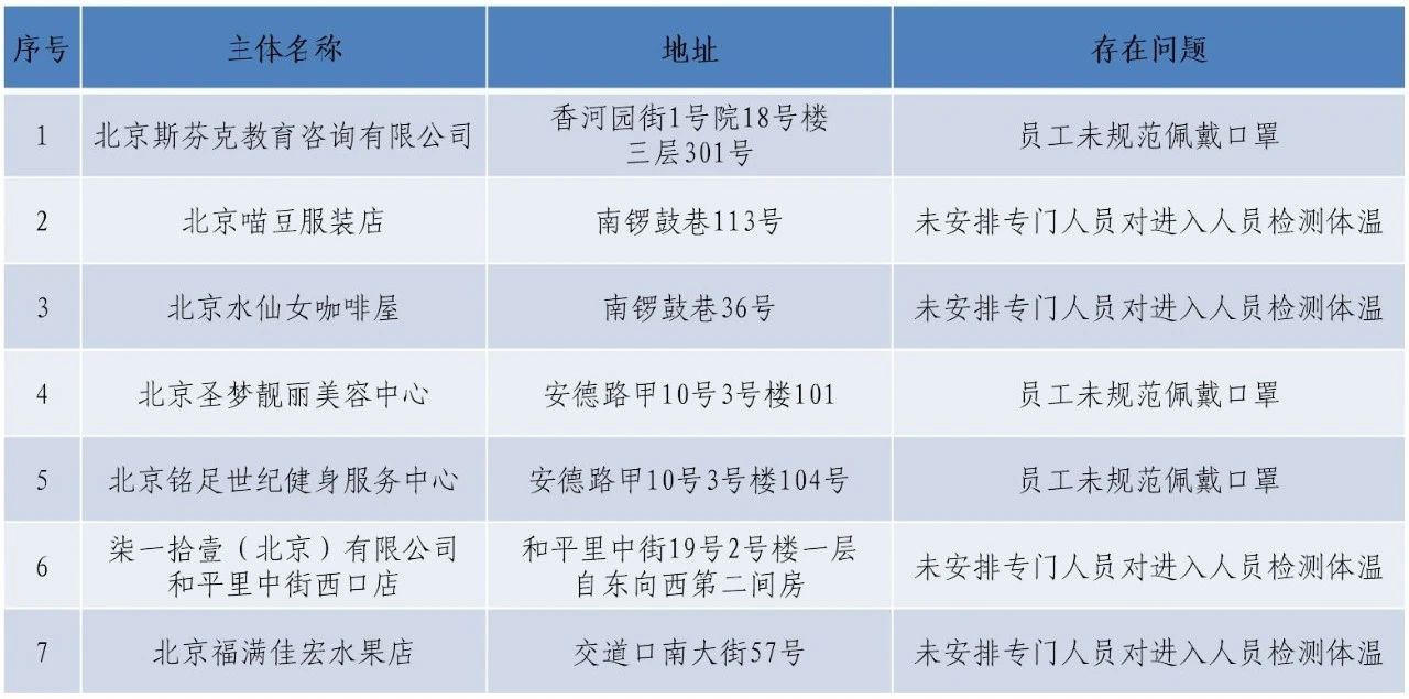 疫情防控措施落实不到位 北京东城区7家企业被通报