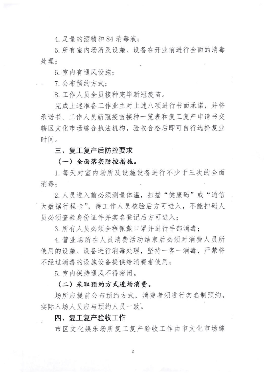 新京报快讯 据掌上驻马店微信公众号消息,驻马店市文化广电和旅游局发布通知,全市博物馆,文化馆,城市书房,网吧,KTV,游戏游艺娱乐场所,电影院等可以在做好疫情防控的前提下有序复工复产,营业性演出活动暂缓复工复产。