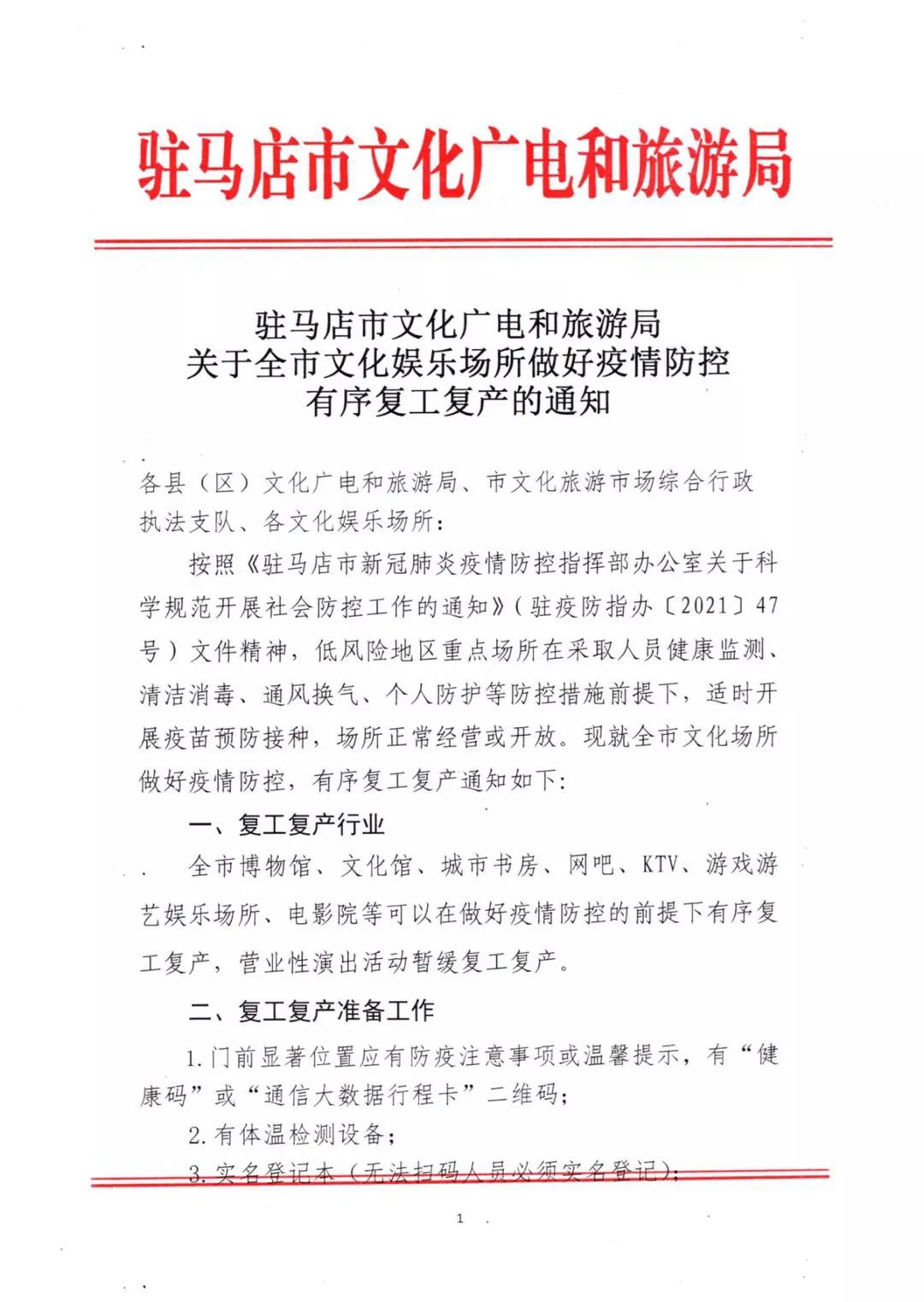 原标题:重磅通知!驻马店这些场所今起可有序复工复产