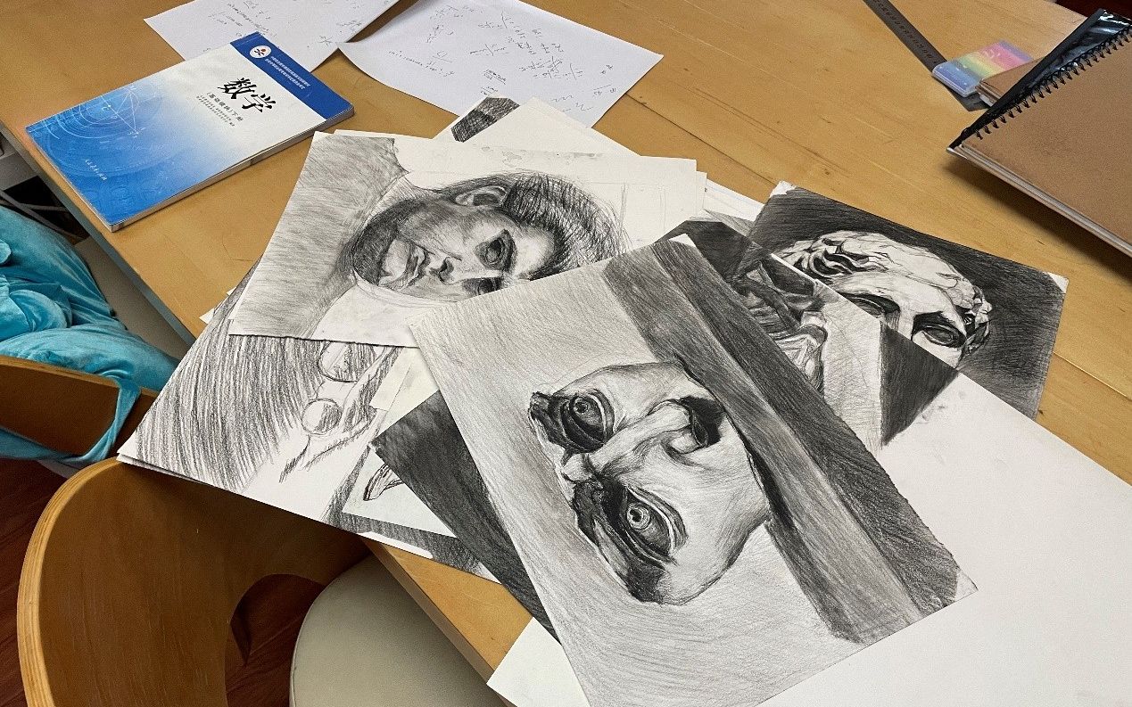 村内绘画空间里的绘画草稿。刘国秋 摄