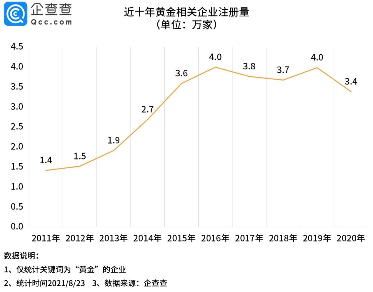企查查数据显示,在经历2012年至2016年的快速发展期后,黄金相关企业注册量已经迈入较为平稳的阶段。企查查数据显示,2019年相关企业注册量为4万家,同比增长8%。今年上半年已新增1.5万家相关企业,同比下降3%。