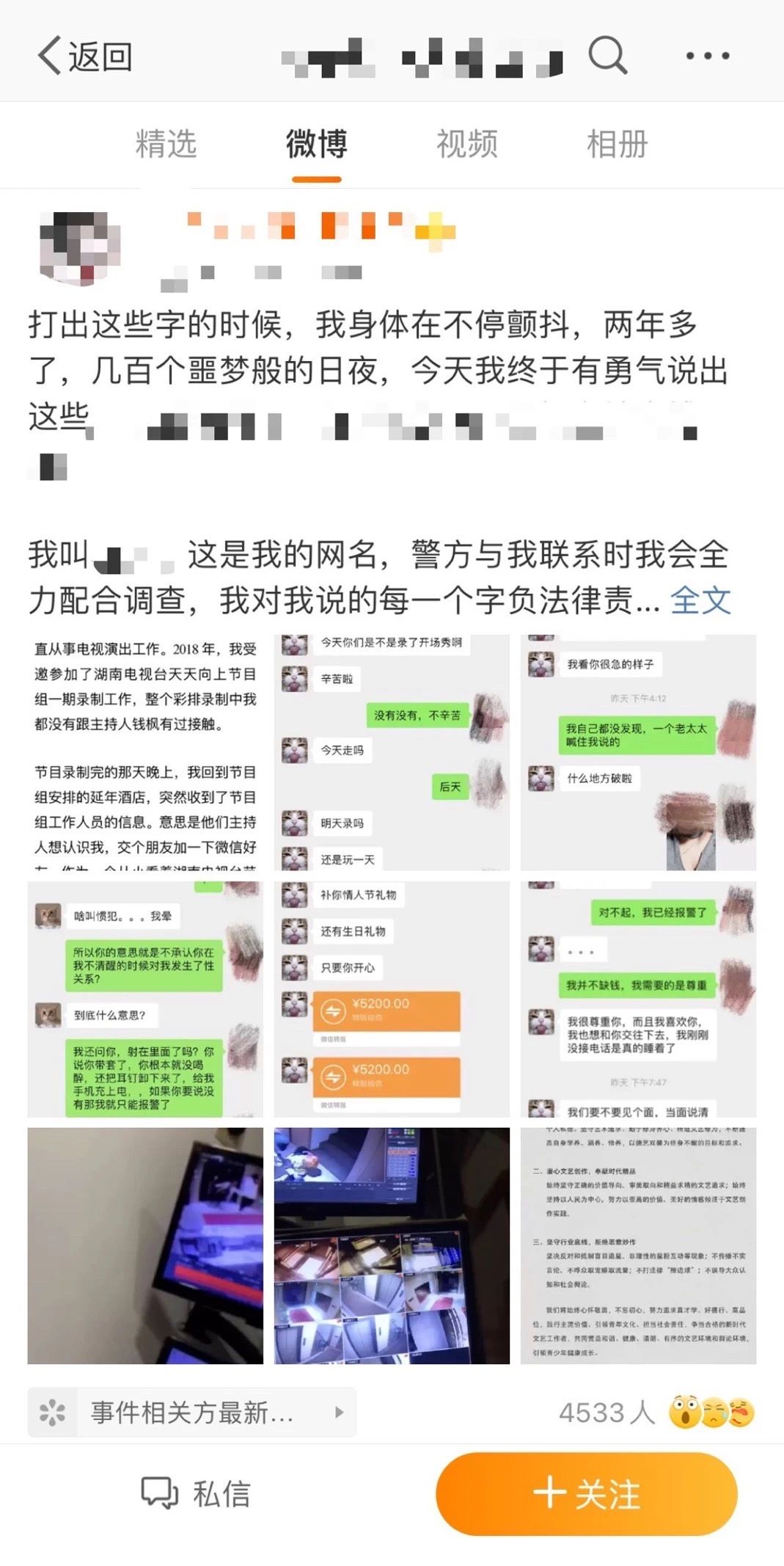 8月24日,“钱枫被指控性侵”的消息冲上热搜。微博账号为“小艺希望坏人被惩罚”发长文详细描述了两年前被钱枫性侵的经过,并晒出了与钱枫的聊天记录以及监控视频照片。