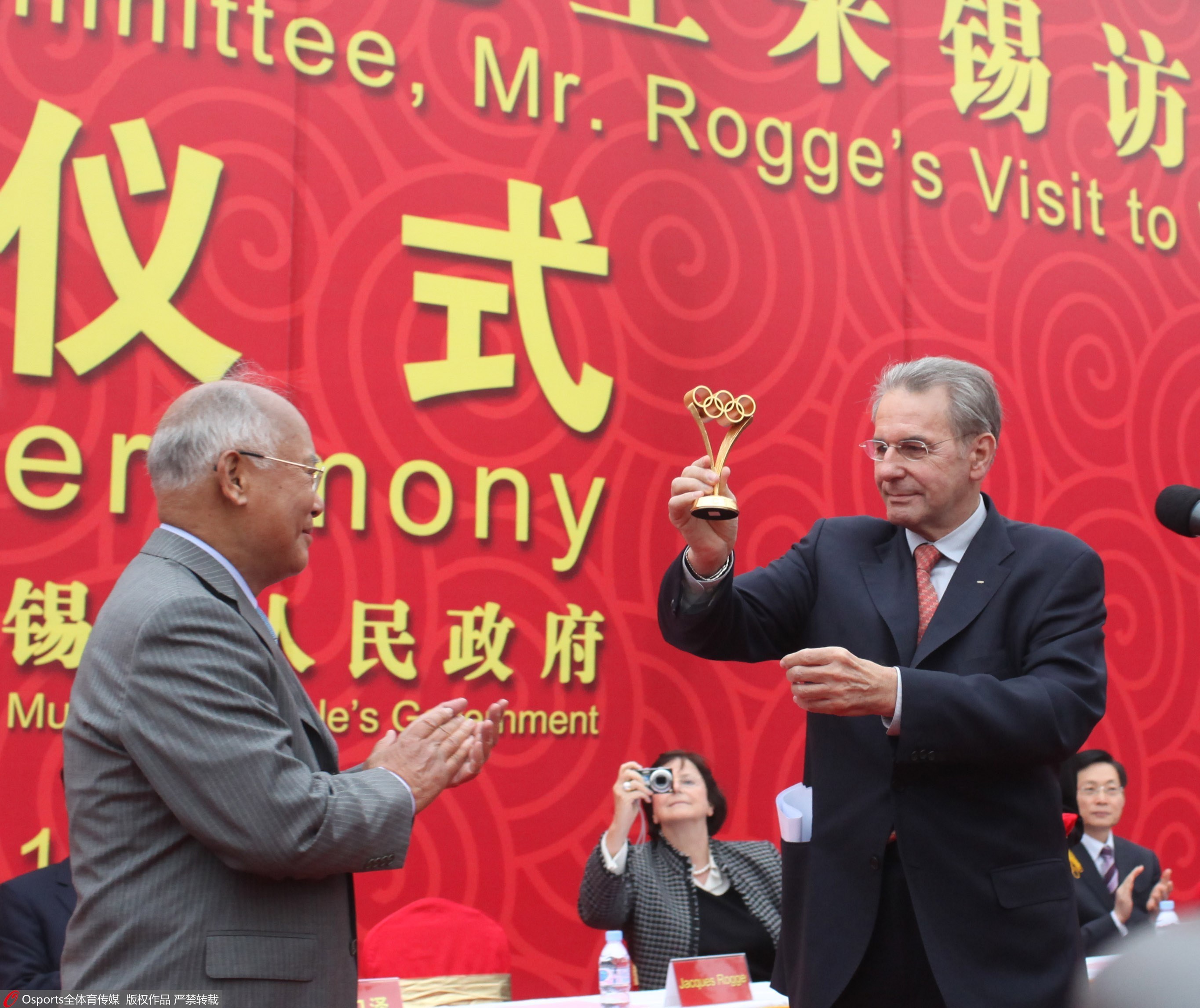 罗格到访无锡,与中国奥委会前主席何振梁亲切交流。资料图/Osports