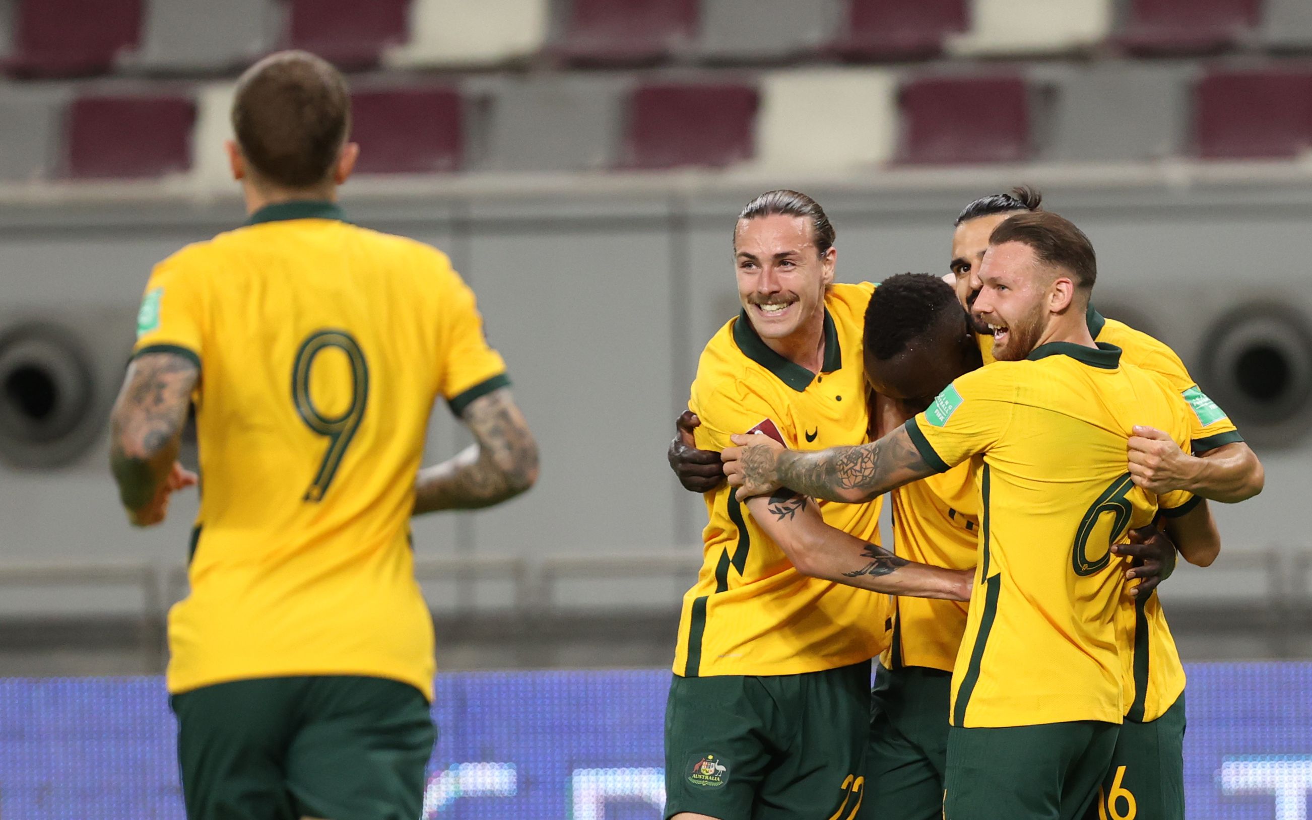澳大利亚队员庆祝进球。图/新华社