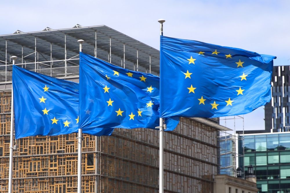 5月21日,欧盟旗帜在比利时布鲁塞尔的欧盟总部外飘扬。(新华社记者郑焕松摄)