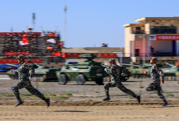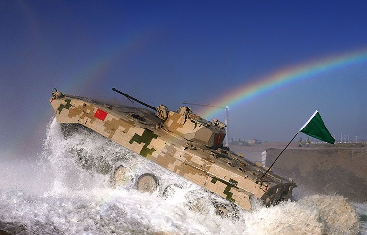 9月3日,“国际军事比赛-2021”中国库尔勒赛区最后一战,“苏沃洛夫突击”接力赛火热开赛,中国、俄罗斯、白俄罗斯、委内瑞拉四国参赛队展开对决。中国参赛队以1小时8分23秒68,取得“苏沃洛夫突击”接力赛第一名,创历史最好成绩。至此,“国际军事比赛-2021”中国库尔勒赛区“苏沃洛夫突击”“晴空”“安全环境”三个项目比赛全部结束。图为:中国参赛队车组通过涉水场。