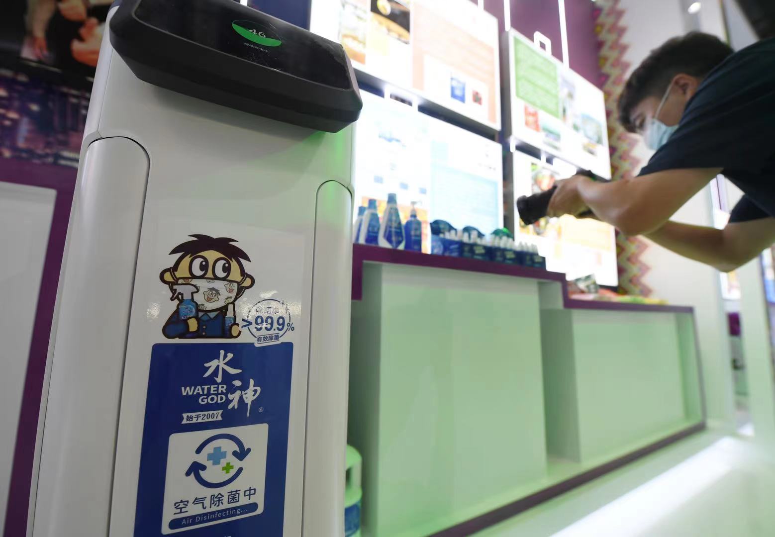 科技也是展馆的一大特色,展台上方装置LED弧形彩幕,烘托科技感与氛围感。星创视界宝岛眼镜在现场推出AI机器人的人工智能筛查,提升了大众对眼部健康的认知程度,很多嘉宾和观众都排队体验AI眼底照像。旺旺集团此次展示的是一款食品级消毒杀菌产品——微酸性电解次氯酸水“水神”。观众在观展的同时,旁边萌萌的“水神消毒机器人”不时巡过,喷洒着薄雾,在现场进行消毒,吸引了不少观众驻足拍照。威盛集团在现场设置了互动体验HTC Vive VR感应装置或触控装置,将游戏、博物馆等展示内容与交互形式深度融合,为体验者带来高品质的虚拟现实体验。