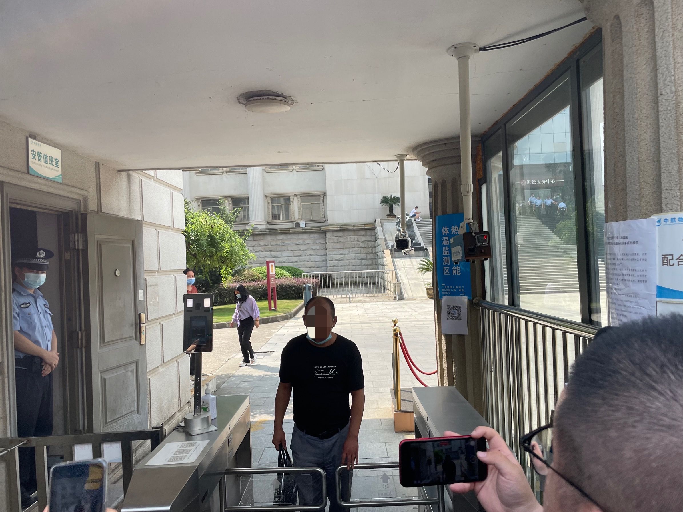 9月9日庭审结束后,劳荣枝二哥劳声桥走出法院。新京报记者 左琳 摄