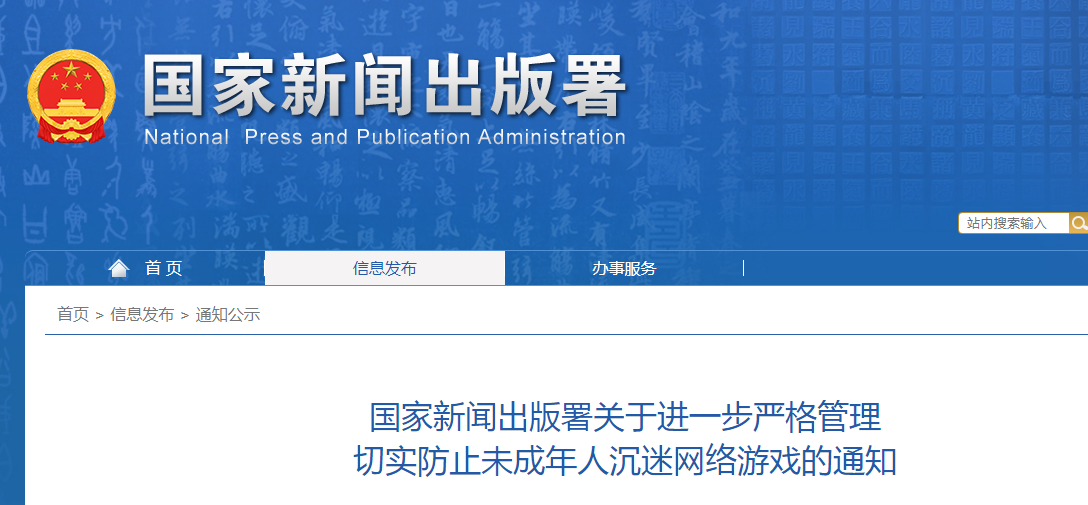 ▲8月30日,国家新闻出版署下发《关于进一步严格管理 切实防止未成年人沉迷网络游戏的通知》。图/国家新闻出版署官网截图