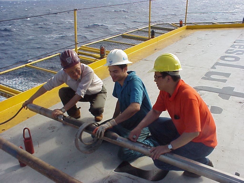 1999年,汪品先(左一)在南海钻探船上。受访者供图