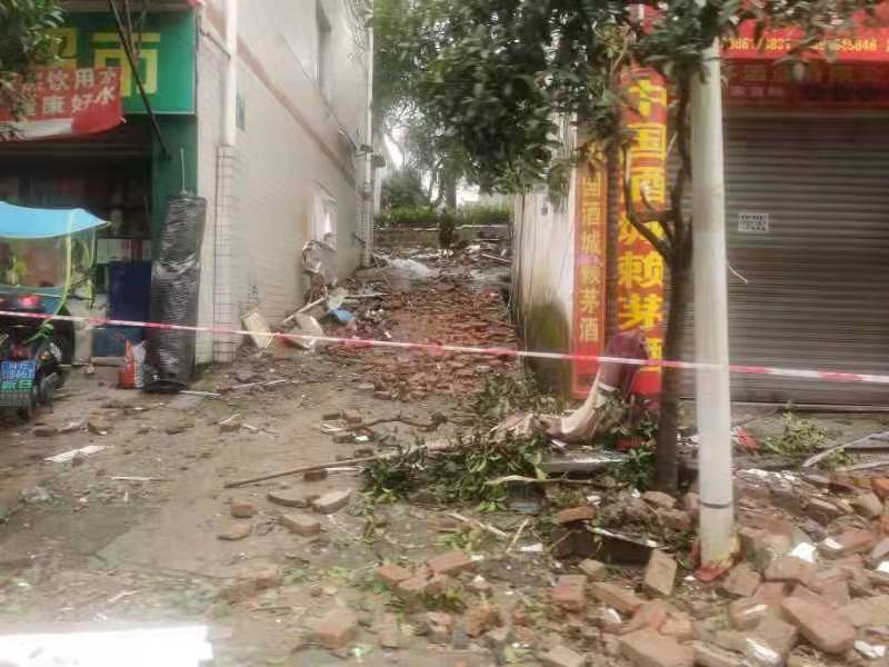 9月16日4点33分,四川泸州市泸县发生6.0级地震,震源深度10千米,震中街道上房屋受损严重。受访者供图