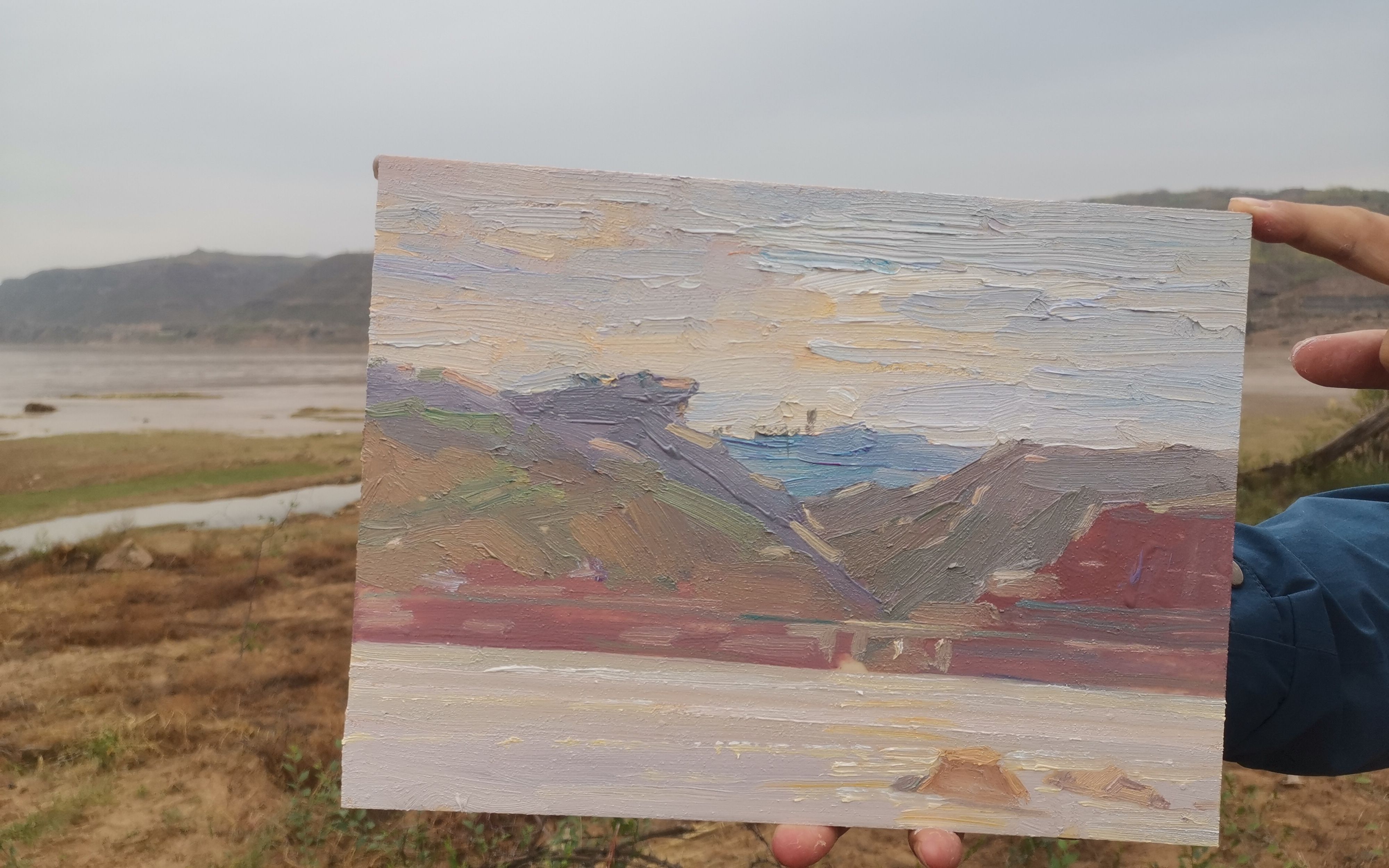牛东伟在泥河沟村,养成每天6点多起床的习惯,去黄河滩上支起画架,面向脊骨一样横贯800里的吕梁山脉,连坐数小时,丝毫没有倦色,时而因捕捉到的色彩而亢奋,“早晨的色彩比较好,每个早晨的黄河,还都不一样。”