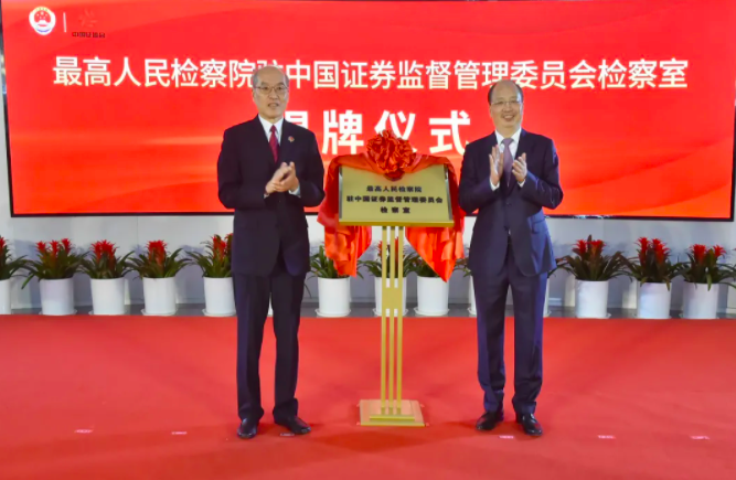 据最高人民检察院消息:9月18日,最高检驻中国证监会检察室(以下简称驻会检察室)揭牌成立。最高检党组书记、检察长张军,中国证监会党委书记、主席易会满共同为驻会检察室揭牌,并在揭牌仪式上致辞。