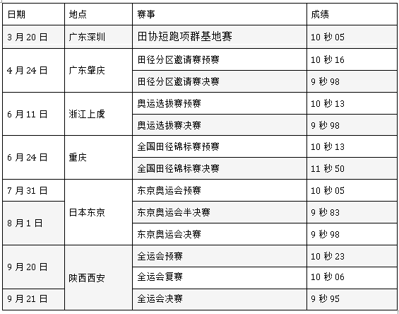 苏炳添2021赛季百米成绩一览