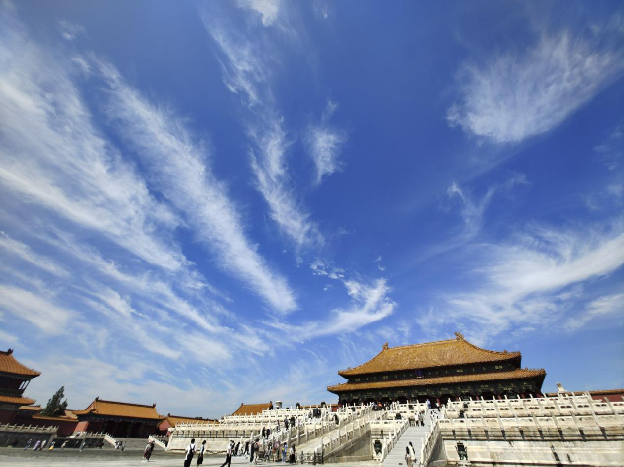 2021年9月17日,绚丽的云彩飘过太和殿上空。新京报记者 浦峰 摄