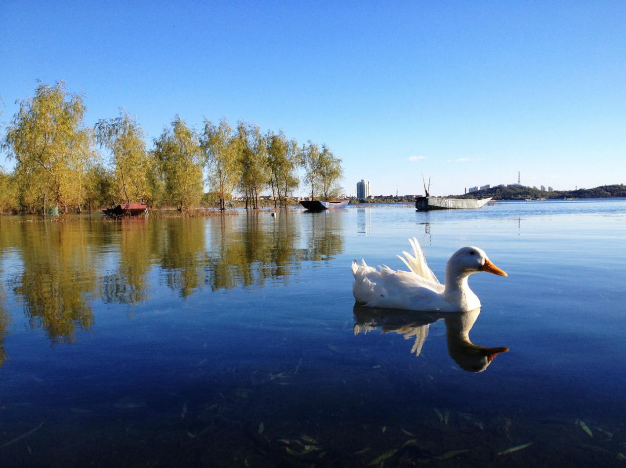 2013年11月3日,大白鸭在秋色中游弋。地点:怀柔水库。新京报记者 尹亚飞 摄