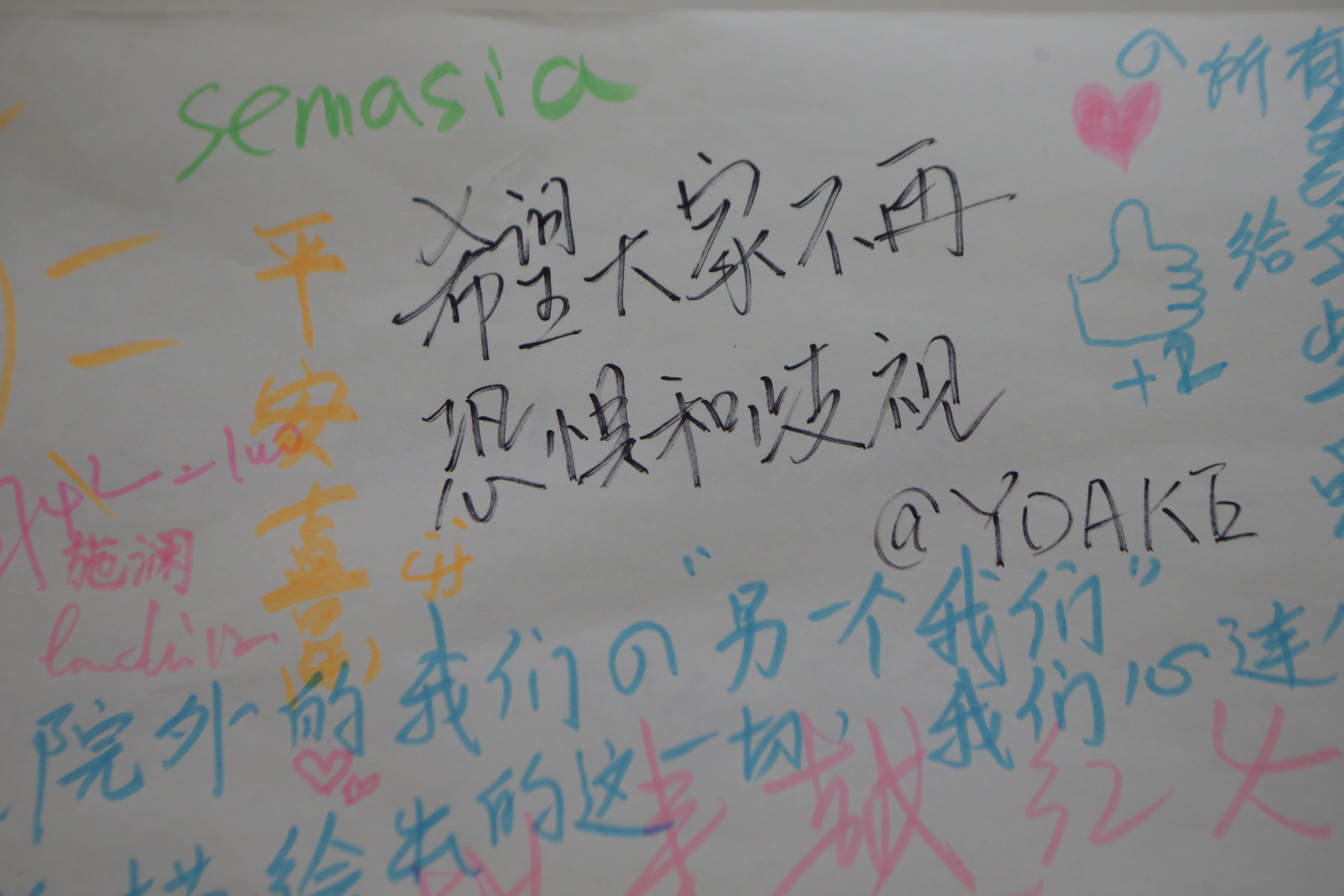 ▲《线条、颜色和故事——原生艺术展》留言墙上写满了参观者的留言。图/IC photo