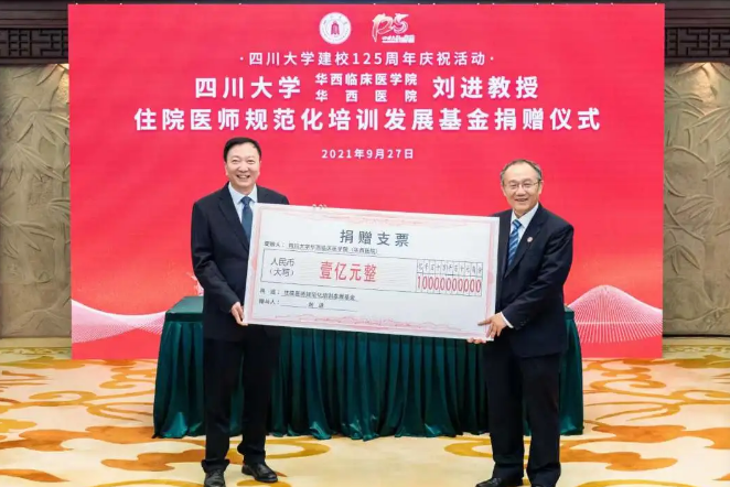 “刘进教授慷慨地把个人所得中的1亿元捐赠给学校,体现了川大华西人的爱国爱校情怀和无私奉献精神,对助力学校人才培养、学科建设,为学校全面加快推动华西医学整体率先迈向世界一流具有重要意义。”李言荣说。