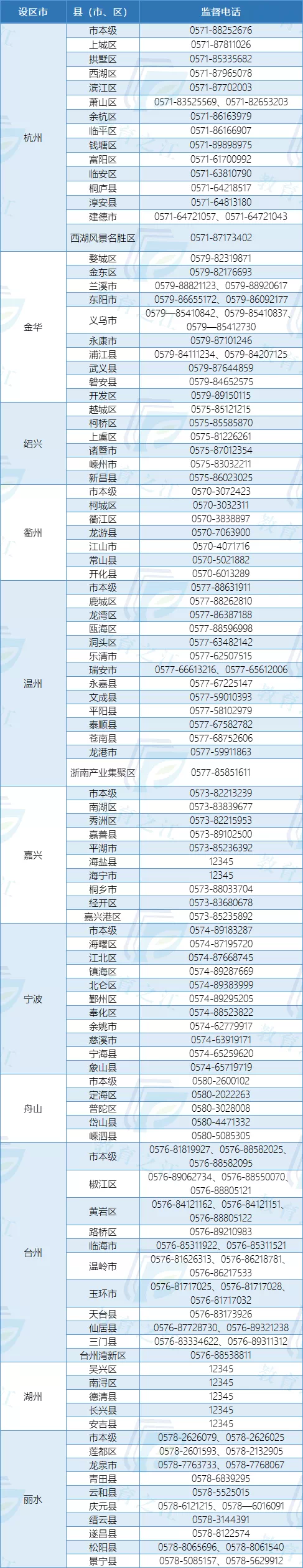 浙江省各区县(市、区)设立并公开“双减”工作监督举报电话。 图/浙江省教育厅公众号“教育之江”。