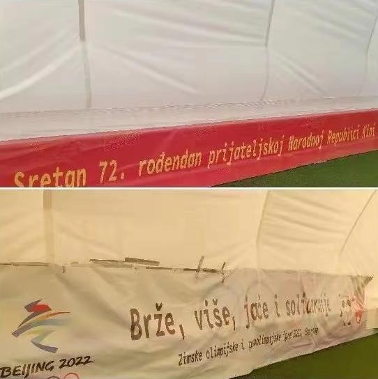 据中国驻波黑使馆9月30日消息,日前,波黑首都萨拉热窝迷你足球联赛主办方在比赛现场打出红底黄字的“祝中华人民共和国72岁生日快乐”横幅,与中国朋友们共同欢度中国国庆。