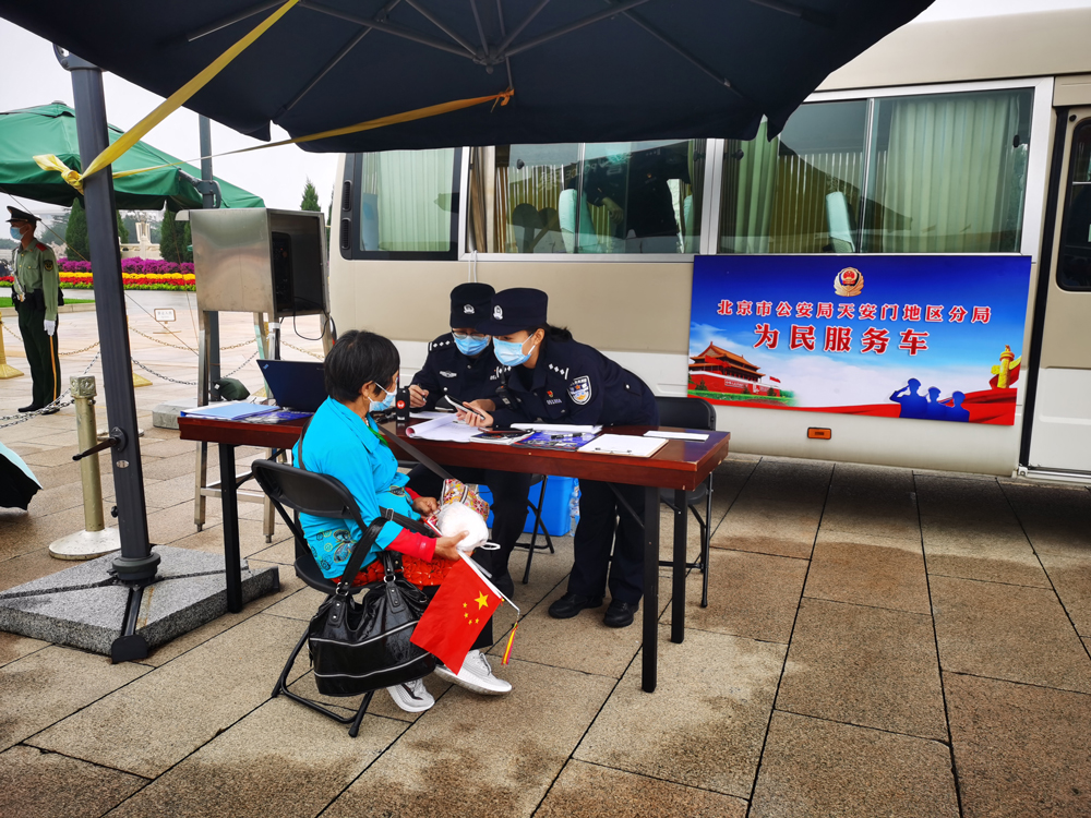 记者了解到,这辆便民服务车从早上8:30开启,一直坚守到广场关闭,全天候为游客提供包括法治宣传、失物招领、走失寻人、健康救助等各项服务,还将根据实际需要不断拓展服务功能。而与此同时,在天安门金水桥畔,另外一个由民警值守的便民服务岗,也在为过往群众提供着同样的便民服务。