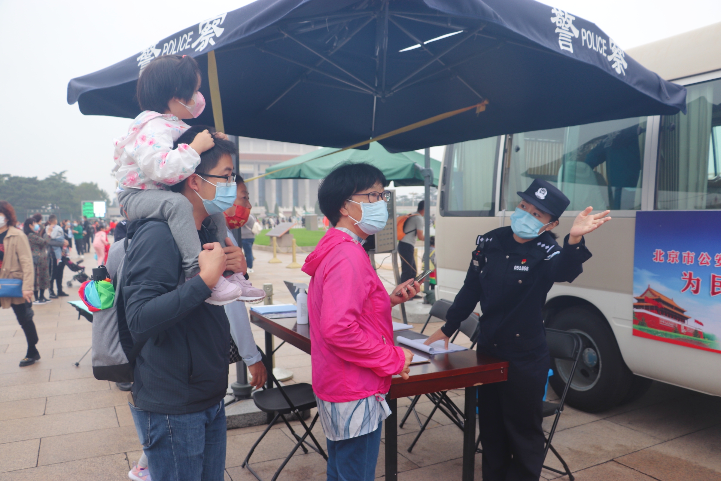 此外,天安门地区分局还在天安门广场上设立了“为民服务车”。