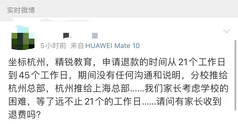 10月8日,精锐教育董事长张熙微博留言成了“催债现场”。新京报贝壳财经记者注意到,微博认证为“上海精锐教育信息咨询有限公司 总裁兼CEO”精锐张熙的微博动态还停留在2014年,时至今日仍有网友发布评论:“快发工资!”。