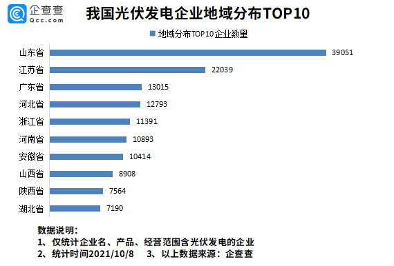 光伏发电企业区域分布:山东最多,其次是江苏、广东