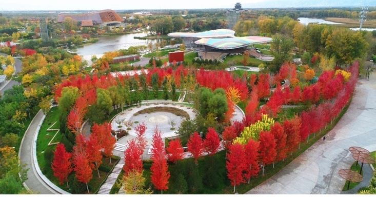 据了解,园区的经典红叶树品种包括黄栌、元宝枫、银红槭,而彩叶树种更是多样,如蒙古栎、海棠、银杏、白桦、白蜡、金叶榆、金枝国槐等,共150余种、五万余株。多种多样的红叶树与中国馆、植物馆、永宁阁等经典建筑相映成趣,增添更多风采。