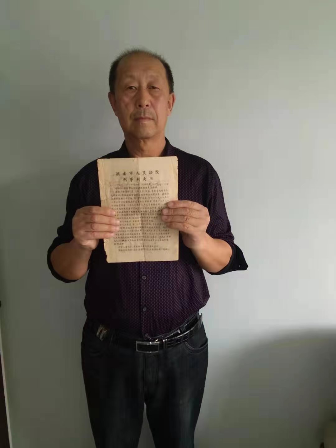 徐宏伟手持已经泛黄的刑事判决书。受访者供图