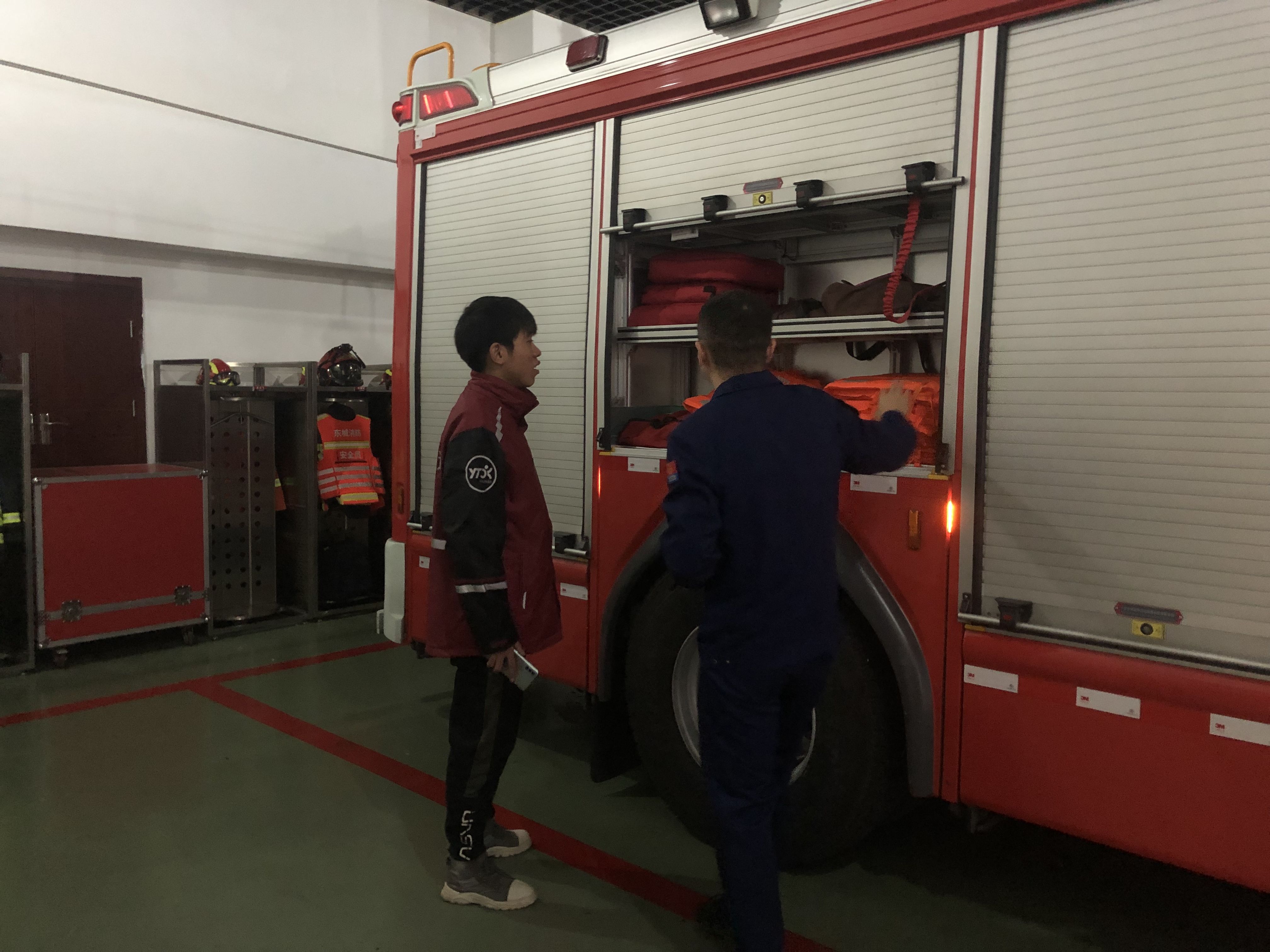 10月9日,付思宇(左三)被邀请来到地坛消防救援站参观,并被聘为消防宣传员。新京报记者 张静姝 摄
