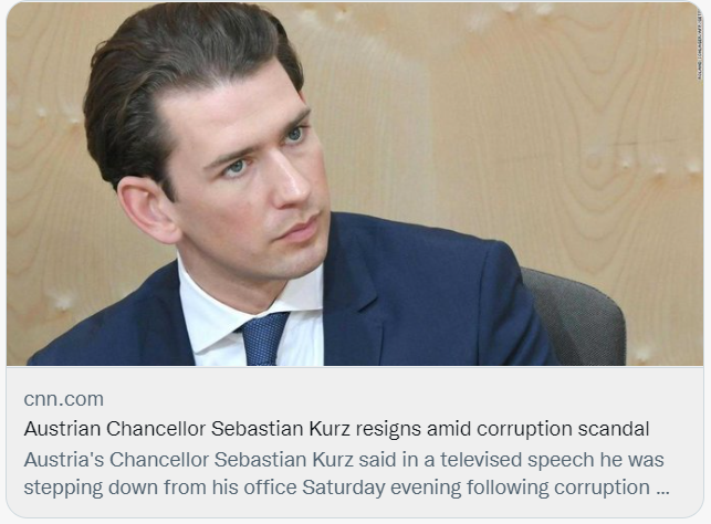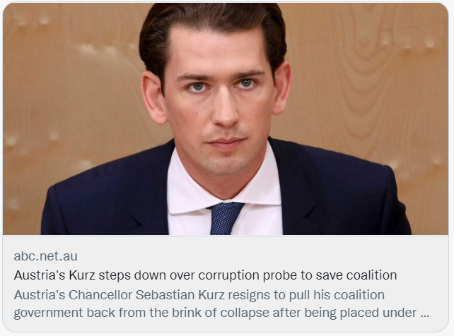奥地利总理库尔茨因腐败丑闻辞职。/社交媒体截图