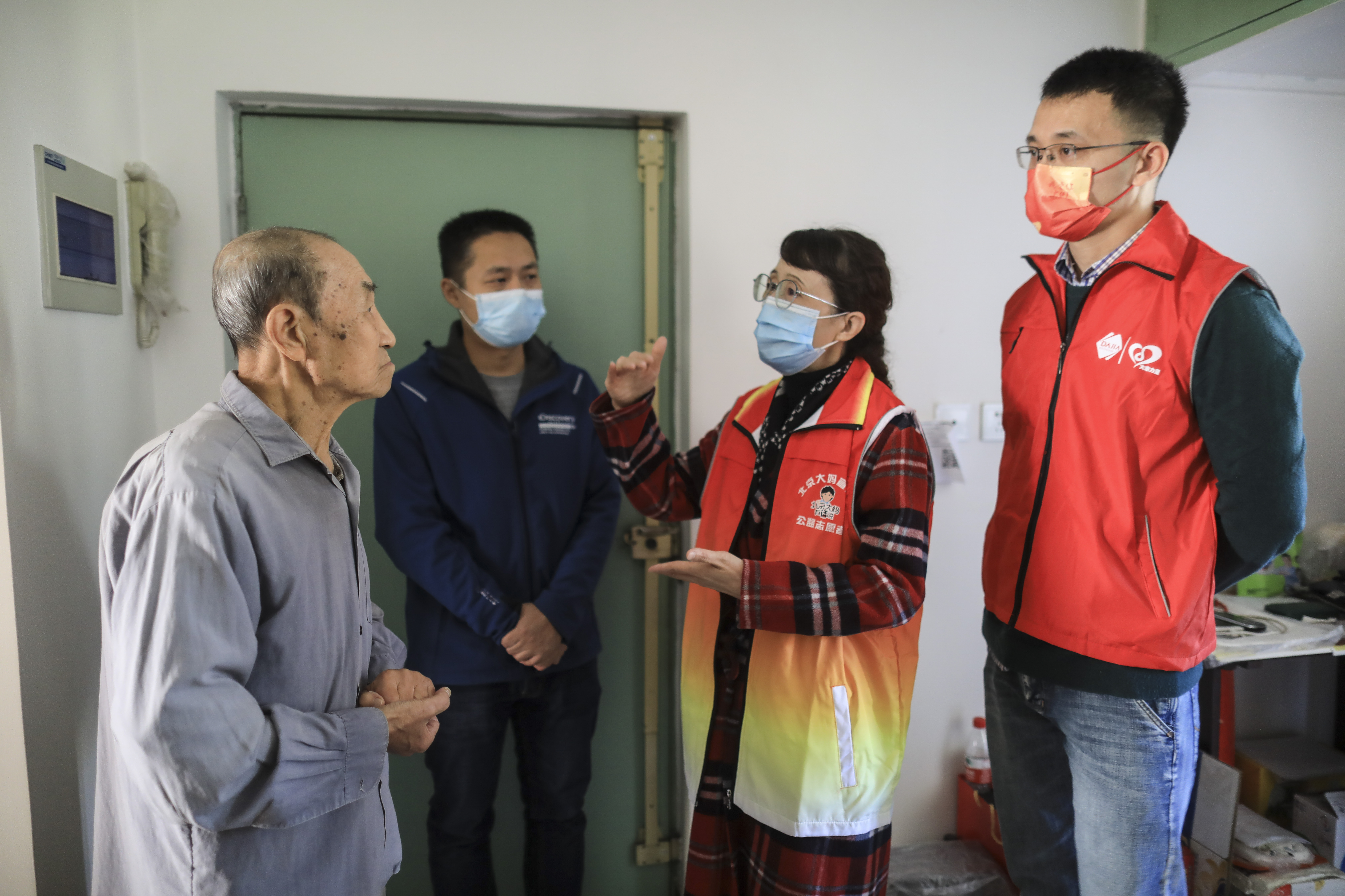 志愿者们还入户看望了97岁的甘家口街道居民杜锦珠。杜锦珠年轻时是上海的地下党,老伴是参加过红军长征的老红军,两年前去世了。杜锦珠生活条件宽裕,但是平常只能跟保姆做伴,看到志愿者们特别开心,“你们这些小妹妹陪我聊天真高兴。”