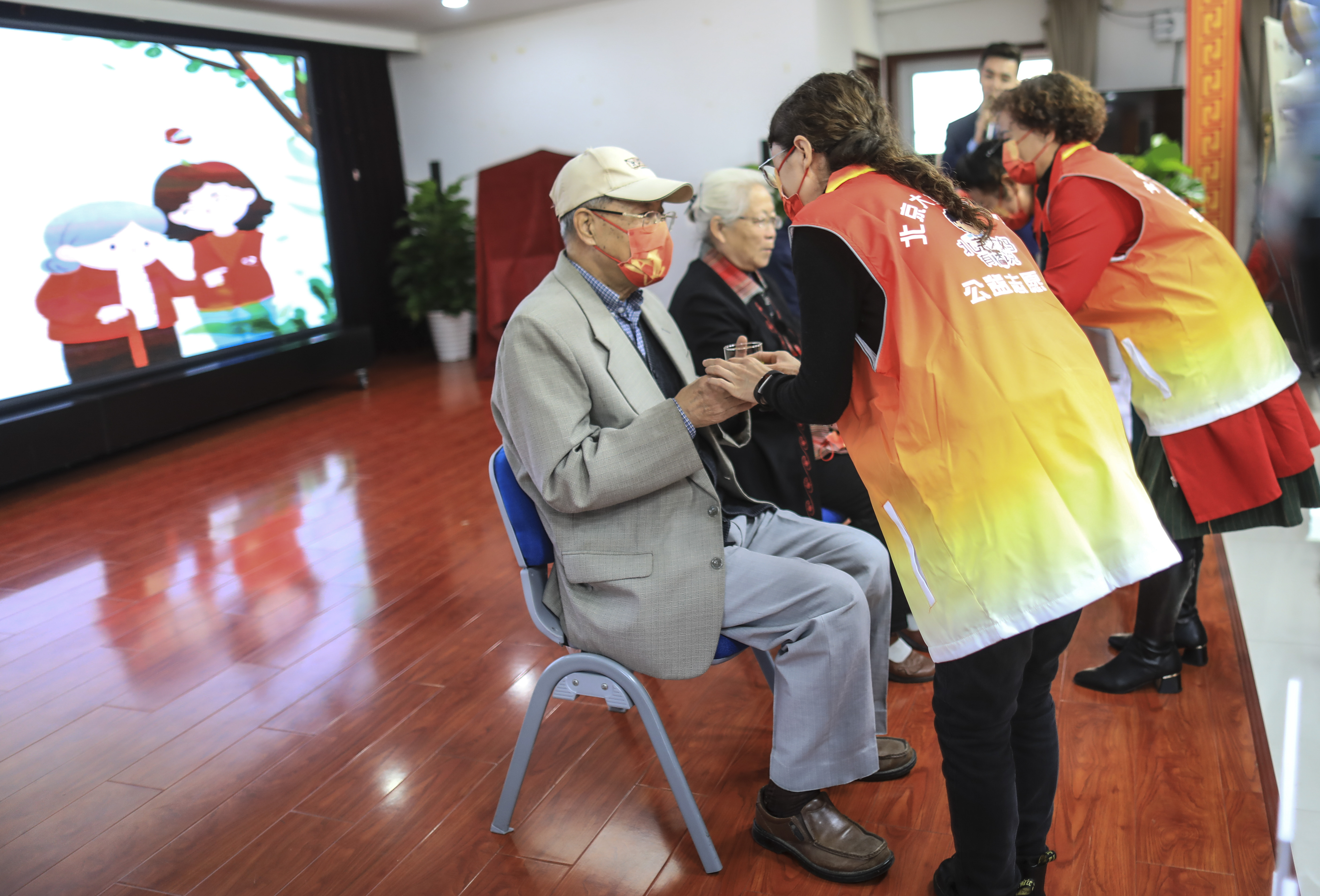 在甘家口街道办市民活动中心,还有十几位高龄老人享受了“五个一”服务。启动仪式上,遵照重阳节传统,几十个志愿者向高龄老人奉上菊花茶,随后还拥抱了老人,“给长辈一个拥抱,我觉得挺好的,咱们中国人表达感情比较含蓄,其实应该更直接一点,拥抱时,我明显能感觉到她们也很高兴,这也是我参加这次志愿活动的初衷,希望给她们一些温暖。”参与这次活动的大家保险集团志愿者杨欣宇说。