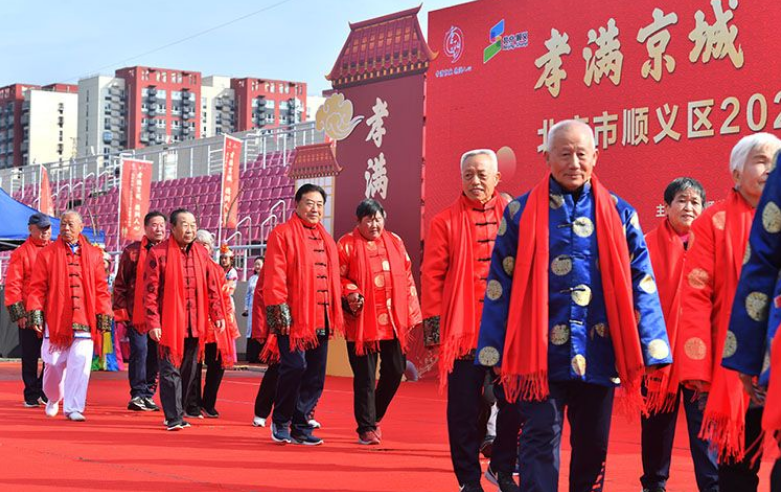 ▲10月13日,“孝满京城,德润人心”2021年北京市顺义区重阳文化节在顺义城南体育中心开幕。新京报记者 李木易 摄