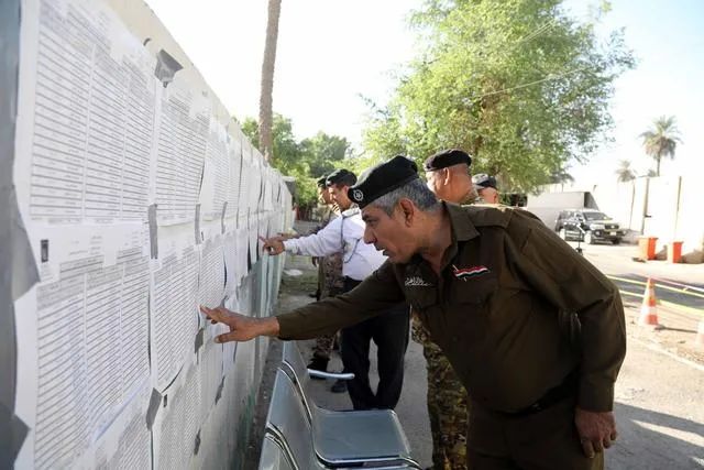 ▲当地时间2021年10月8日,伊拉克安全人员在巴格达一处投票站查看信息。当天,伊拉克安排境内安全人员等特殊群体选民提前进行新一届国民议会选举投票。图/新华社