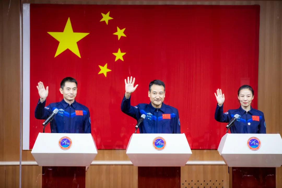 新京报快讯 据“中国载人航天”消息,北京时间2021年10月14日下午17时,翟志刚、王亚平、叶光富三名航天员在酒泉卫星发射中心问天阁与中外媒体记者集体见面,并回答记者问。这是神舟十三号飞行乘组的首次亮相。