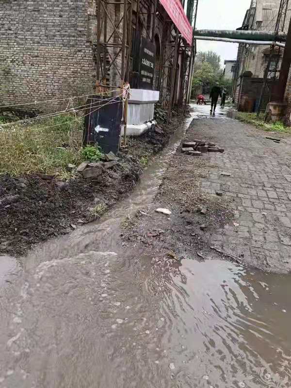 王迎杰表示,纺纱厂旧址紧靠汾河,厂内老医院的管道连接着汾河。“我们有河坝拦着汾河,防止洪峰时涌入老厂区,但此次厂内积水来源于老医院的管道破裂。当时河水达到1000多立方米/秒了,汾河的水位越高,管道这边的压力越大,所以水喷出来后一会儿积水就达到1米多高。”