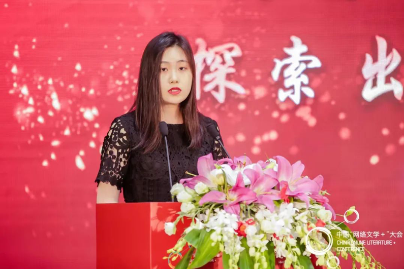 阅文集团海外业务内容负责人孙丹青在第五届中国“网络文学+”大会走出去论坛上进行主题发言。