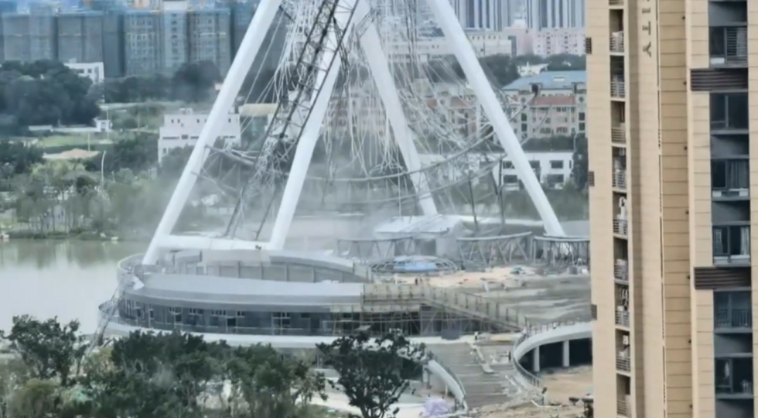 另一位目击者表示,自己在附近居住,期待摩天轮建成后,带着孙子上去坐。“昨天我们还看到,摩天轮的大部分轮盘都已建设完成,现在全部坍塌了。”