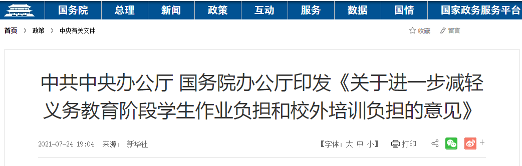 ▲涉事学校的做法,与国家“双减”政策要求并不相符。图/中国政府网截图